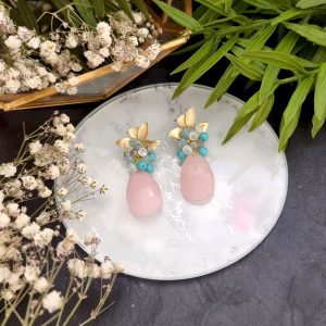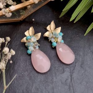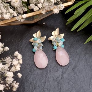 Pendientes de medio racimo con jade rosa, azul, opal y labradorita