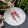 Pendientes de racimo con calcedonia aqua, toapcio rosa, iolita y ópalo azul